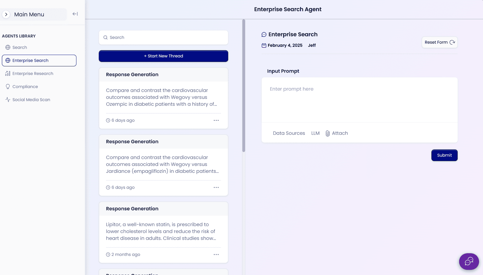 Agent Landing Page Start New Prompt